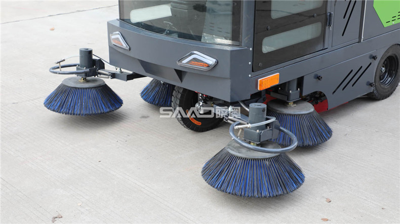 五刷全封閉駕駛室掃地機是掃地、噴水、吸塵相結合的自動駕駛式清潔能源綜合機器。清掃如粉塵、樹葉、煙頭,煙盒、小石子等垃圾。廣泛使用于學校、車間、車站、碼頭、賓館、物業、倉庫、地鐵站等區域。清掃效率是傳統的人工清掃效率的10-12倍,一臺掃地機可代替10-12位清潔工人。