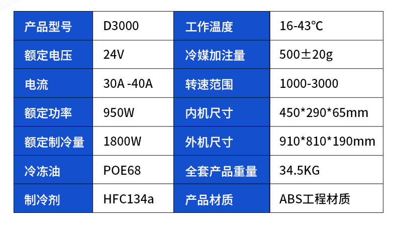 D3000車載頂置駐車空調