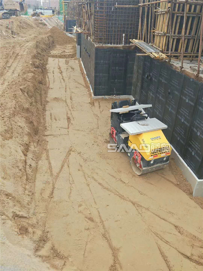 濰坊客戶使用手扶雙輪壓路機施工現場