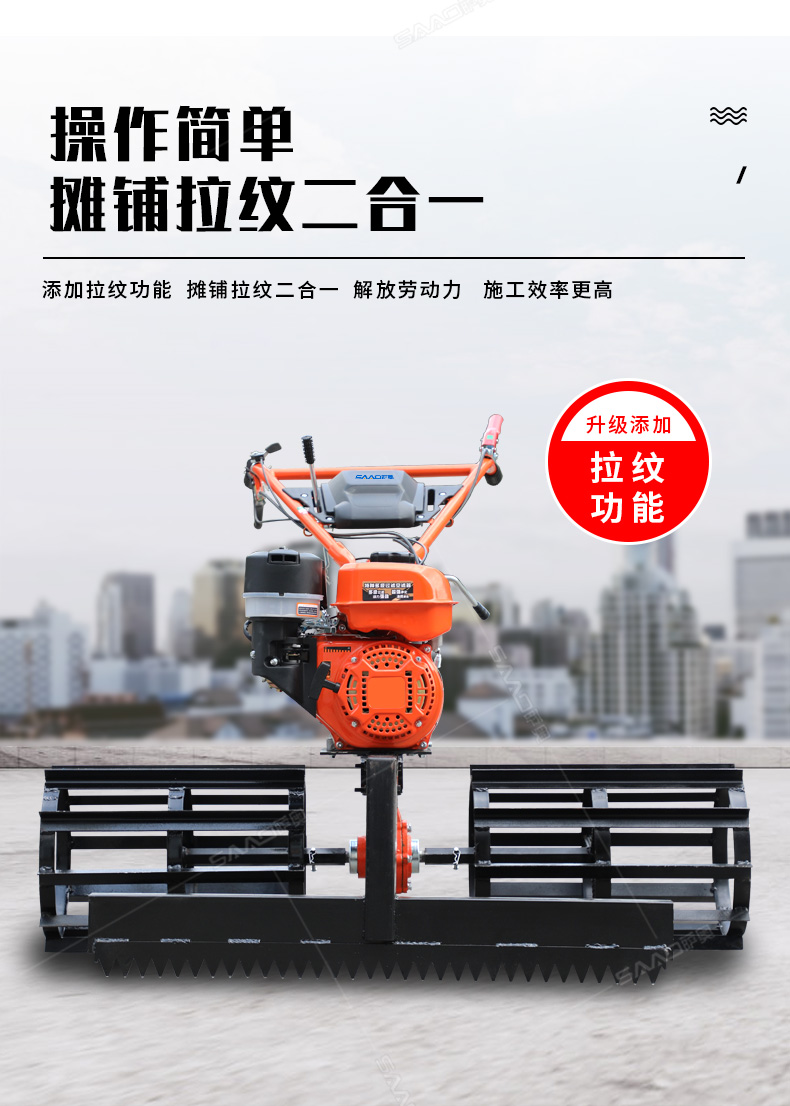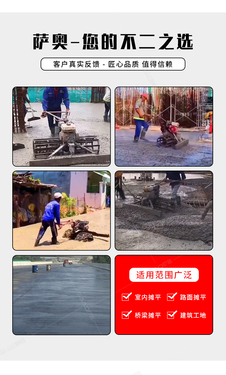 混凝土攤平機可用于刮平混凝土路面,增強混凝土的密度。可以用于公路、場院、房頂、河道等混凝土路面攤鋪整平。