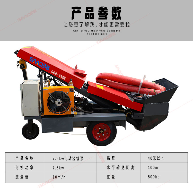 7.5kw電動二次結(jié)構(gòu)澆筑泵是混凝土澆筑專用設(shè)備,其澆筑混凝土連續(xù)性好、輸送效率高、施工方便,操作簡單。