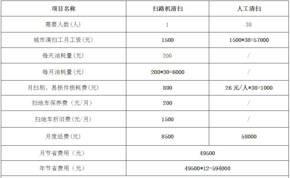 結(jié)論:薩奧路面保潔養(yǎng)護(hù)清掃機(jī)每年可至少節(jié)省費(fèi)用將近60萬(wàn)元。