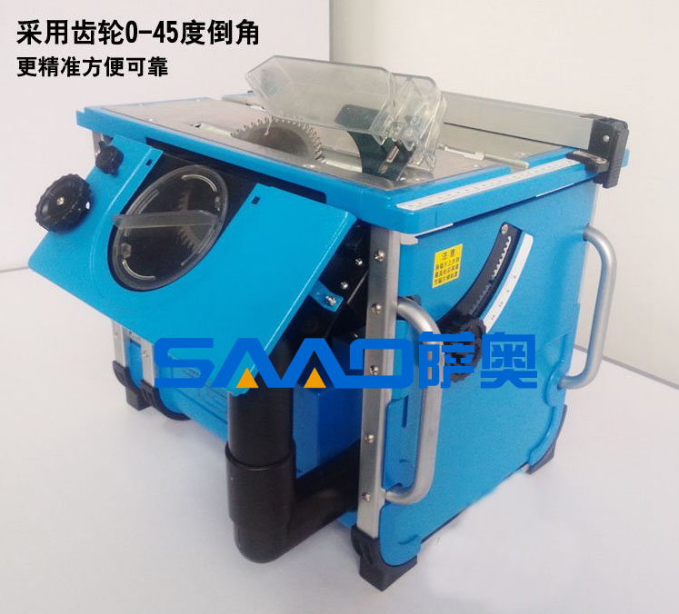 2、 鋸片具有45度傾斜切切割踢腳角線,并開創齒輪調節,有效避免崩邊,誤差度在0.5度以內;