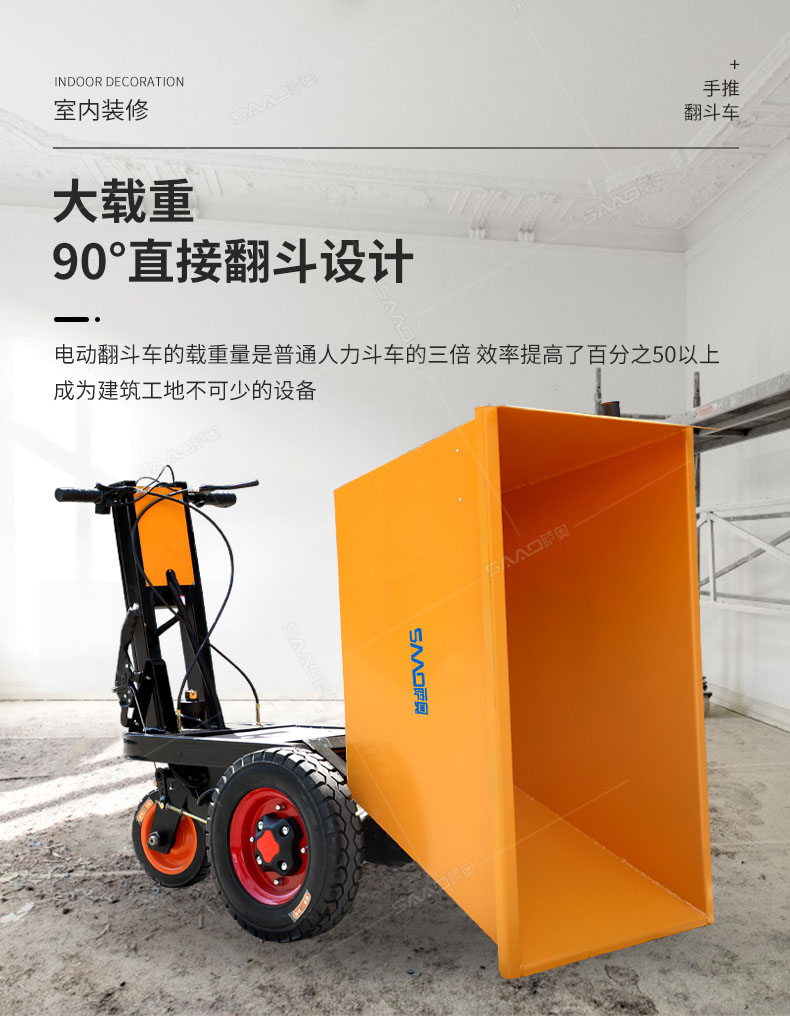 產品介紹: 此款車適用于建筑工地、室內裝修、養殖場、工廠等場所,運輸沙子、水泥、土方、混凝土、建筑垃圾生活垃圾、養殖場動物糞便、飼料等,體積小操作簡單靈活,可原地360度轉圈,可進入樓層、樓道、電梯、吊籃等各種狹小空間作業,是您必不可少的裝卸助手。