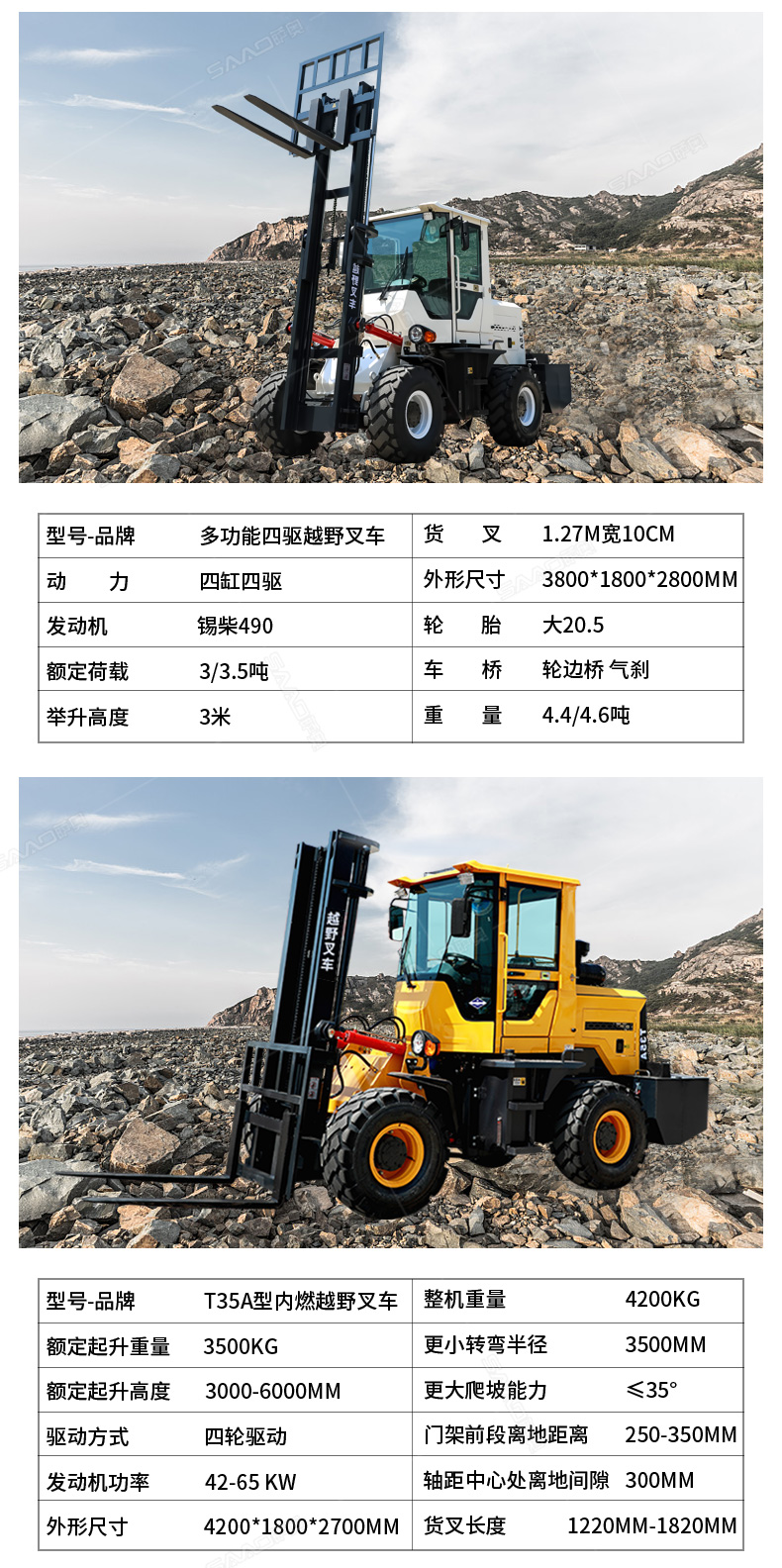 公司供應各種規格四驅越野叉車,總有一款適合您。該系列產品選配不同的工具可滿足不同施工要求,應用廣,性能優,歡迎來廠考察,具體詳情可電話咨詢。