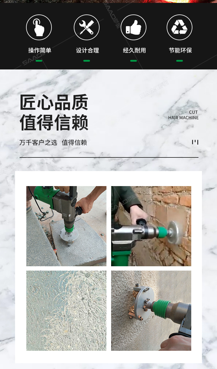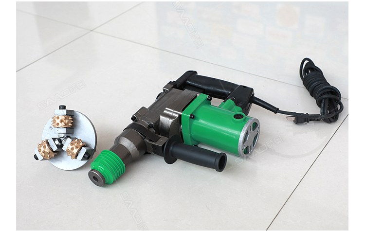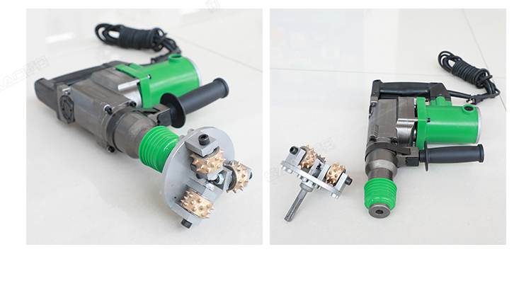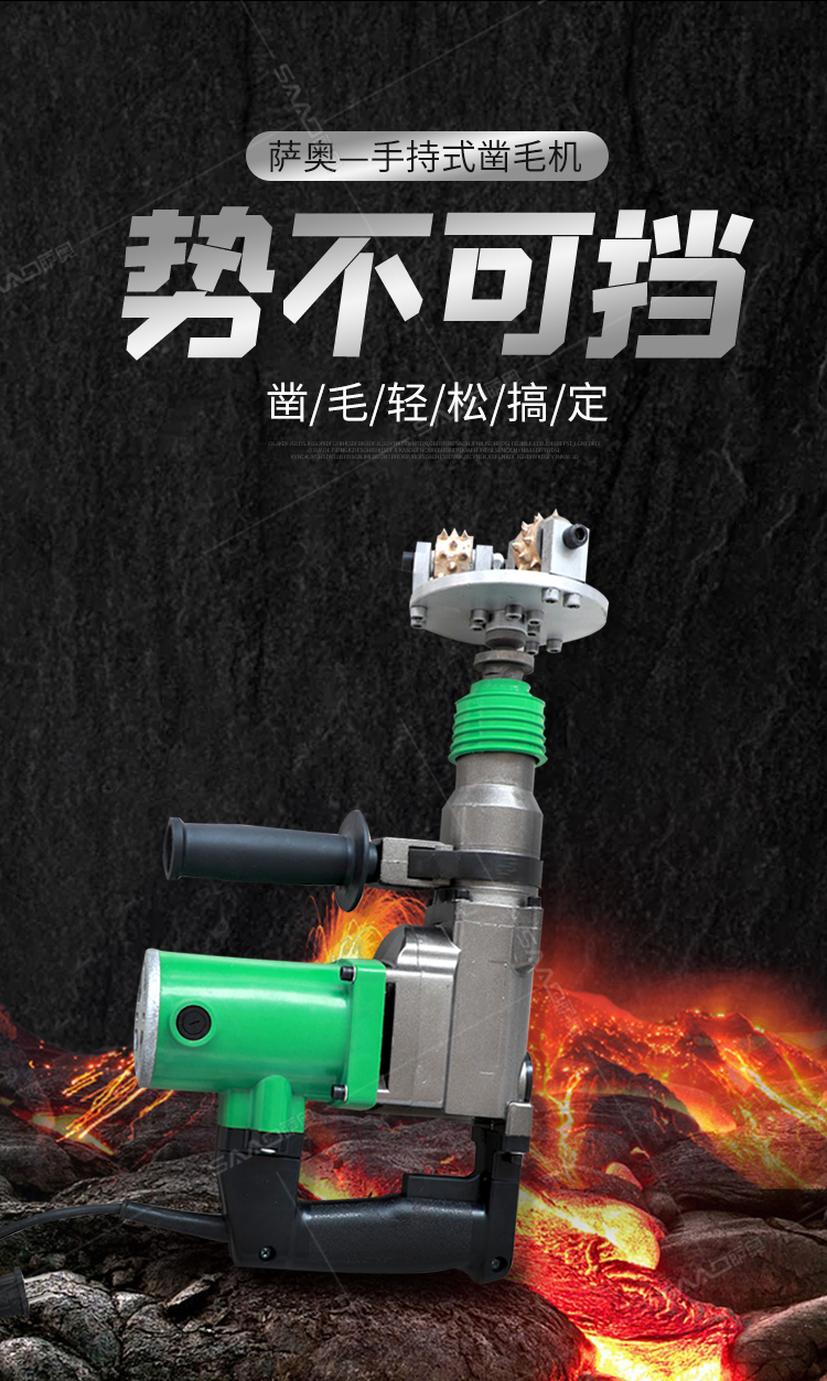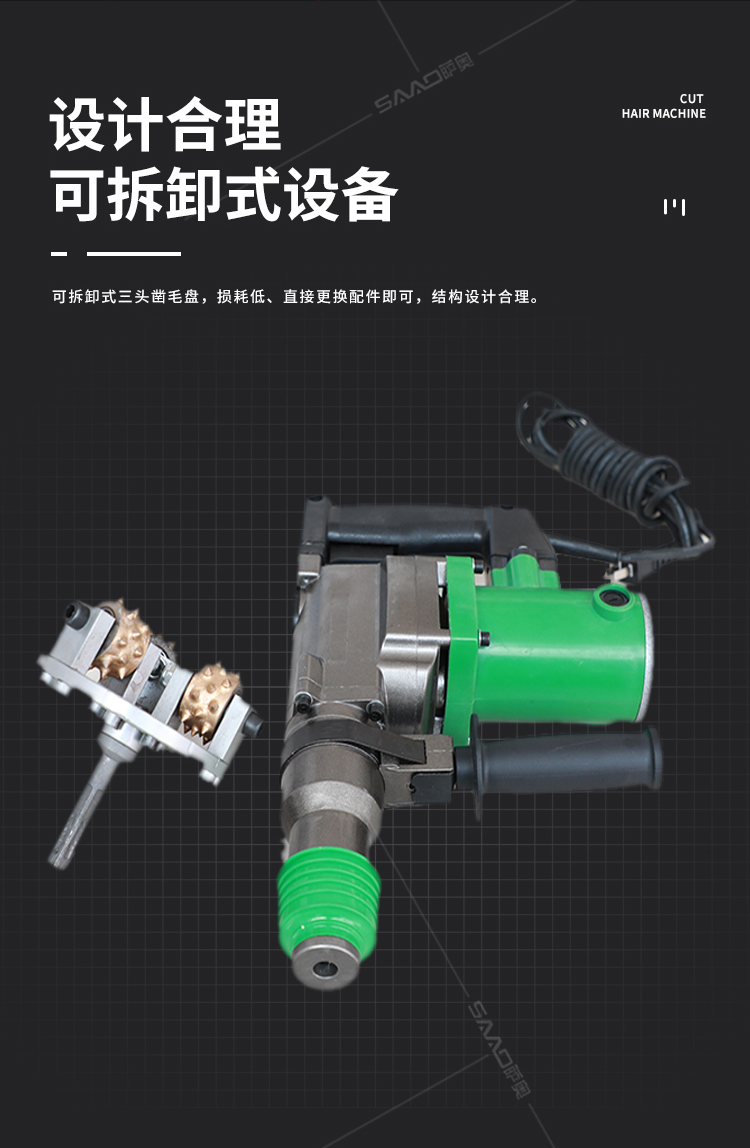 電動手持式鑿毛機 金剛石三頭鑿毛設備 小型水泥路面拉毛機 功率:1050w 工作效率:15-18㎡/h 電壓:220v 磨盤尺寸:50*120mm 合金磨輪尺寸:3*24齒 鑿毛深度:3-8mm 整機重量:7kg