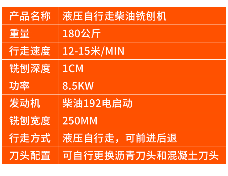 【產(chǎn)品介紹】 廣泛應(yīng)用于各種高強(qiáng)度混凝土瀝青等超高部分的去除而量身打造,該機(jī)器動(dòng)力足自動(dòng)行走,銑刨深度和寬度適中,機(jī)身穩(wěn),銑面均勻。是其他大型機(jī)動(dòng)銑刨機(jī)和普通小型銑