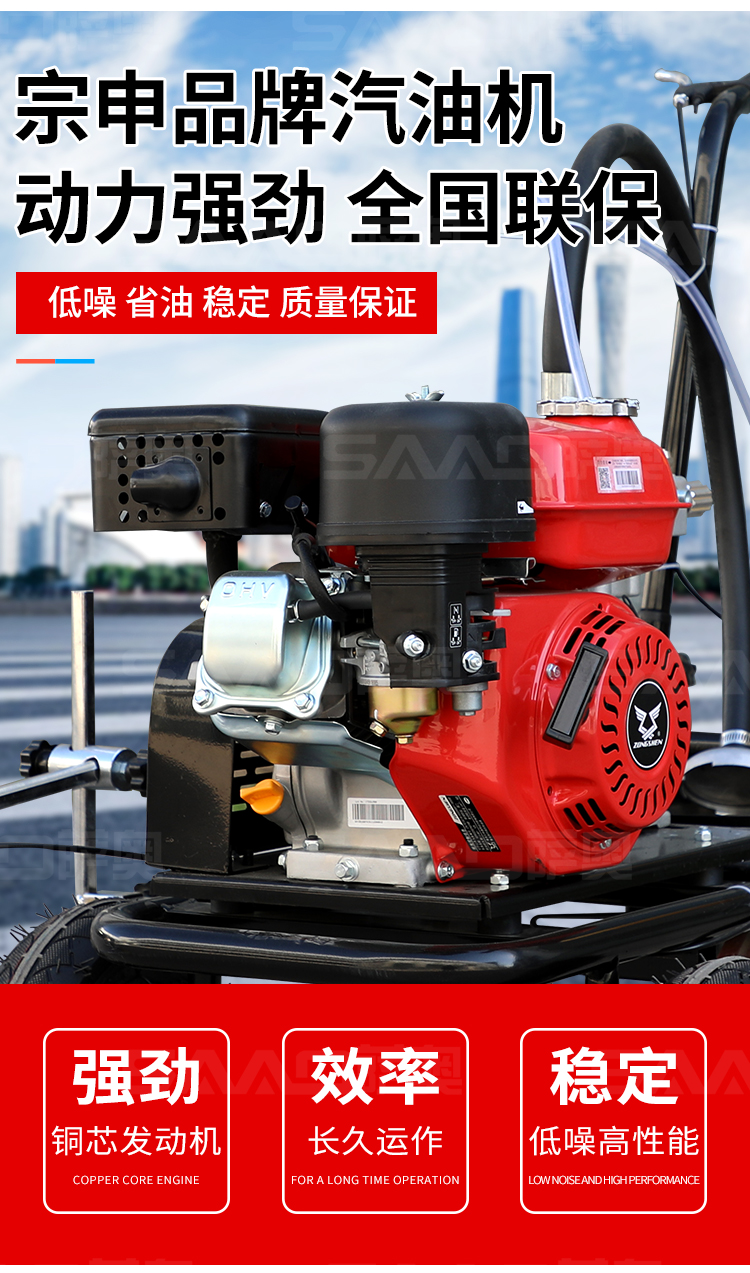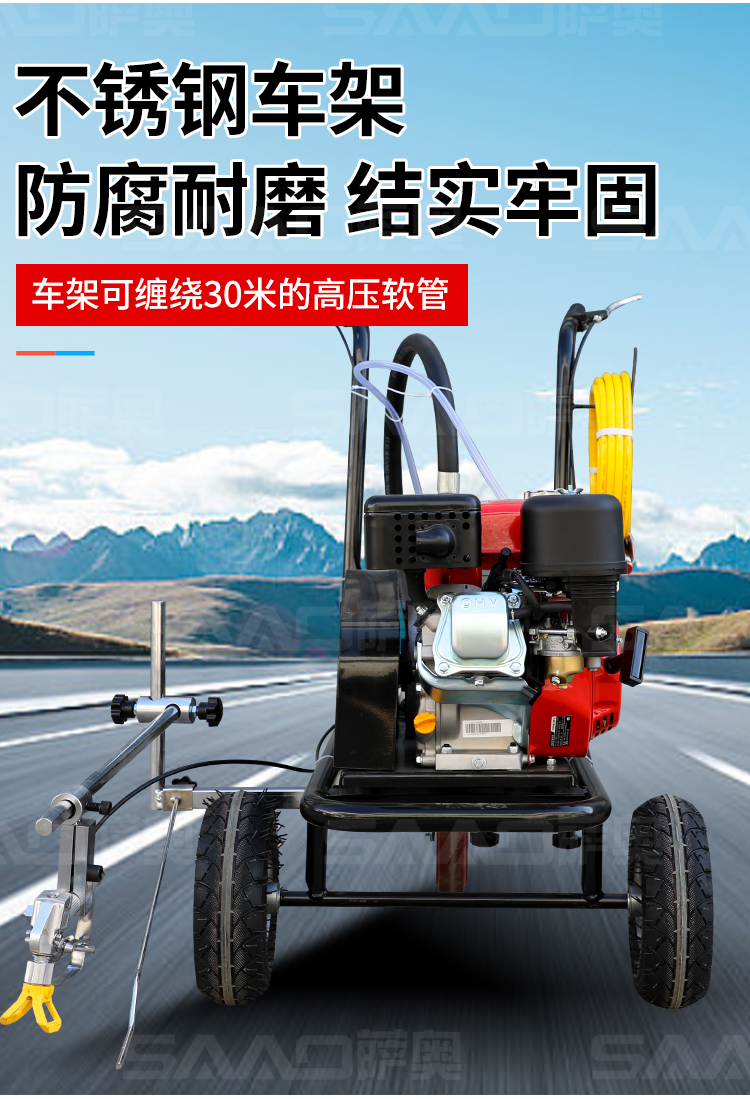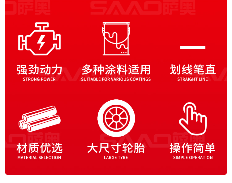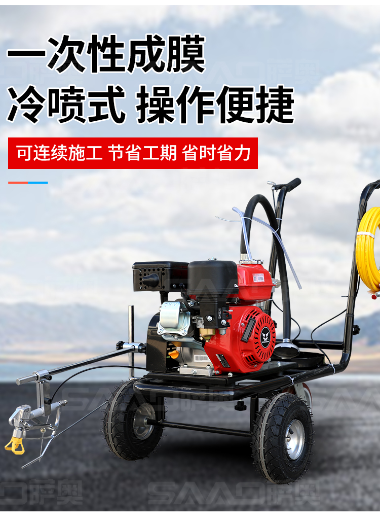 冷噴劃線機是常溫標線施工的專用設備,噴出的線型清晰、流暢、飽滿、均勻,主要用于公路、停車場、機場、加油站、公司廠區等涂畫直線、虛線、曲線、斑馬線、文字、箭頭、圖形