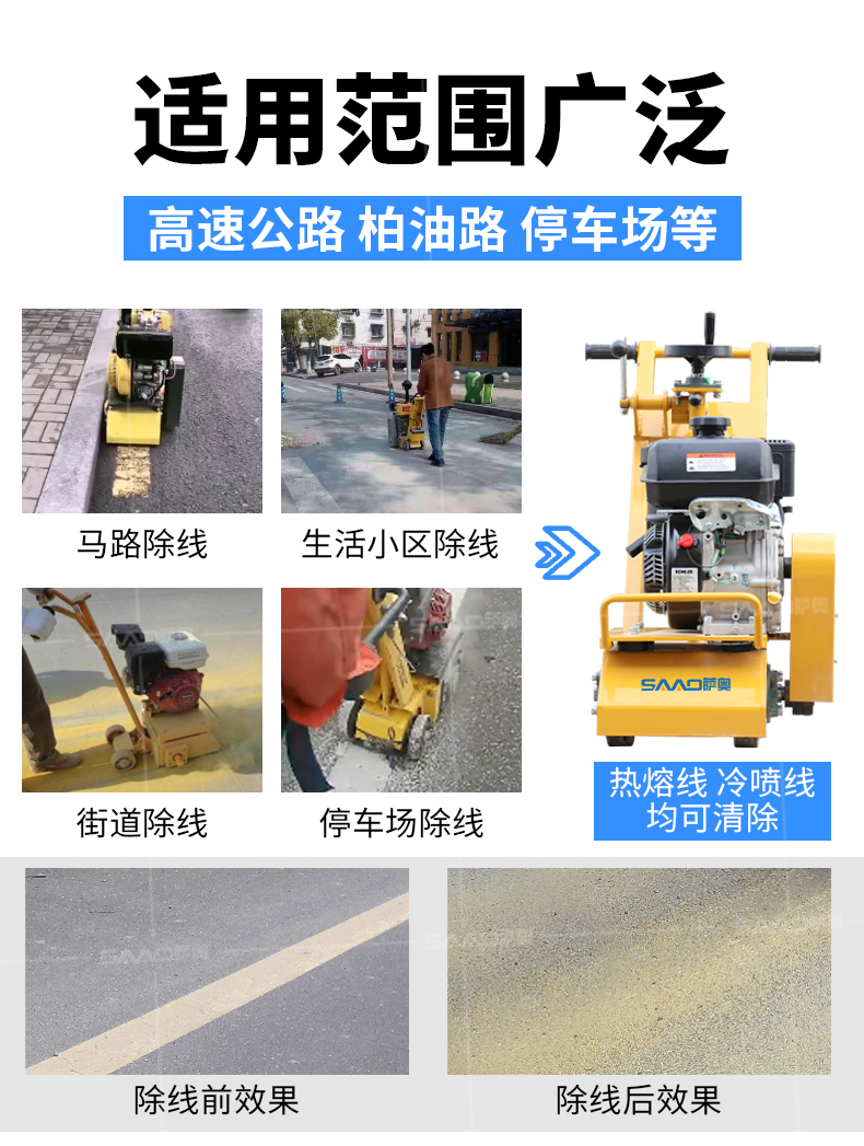 標(biāo)線清除機是用來清除殘損、龜裂、變色、錯劃等標(biāo)線的專用型清除設(shè)備。