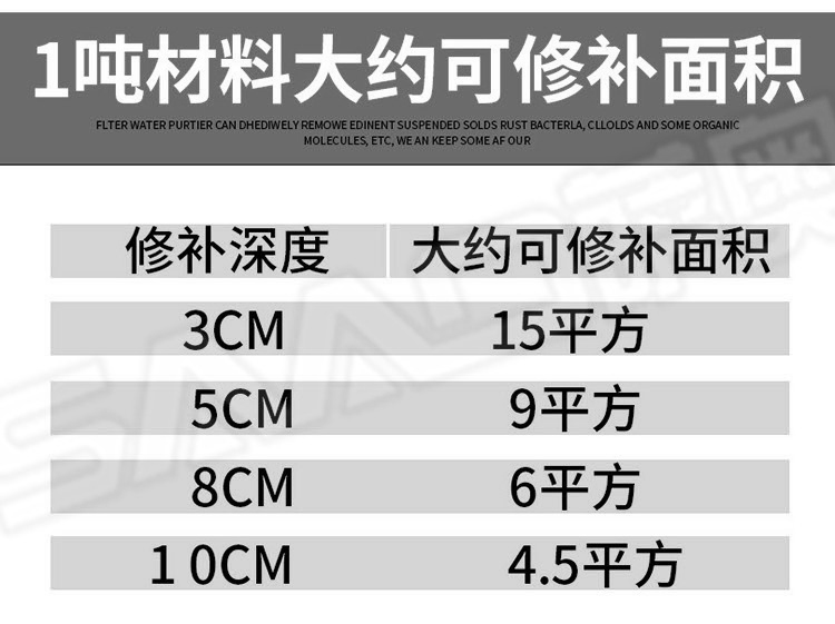 冷補料是采用特殊的方法改質瀝青,使得瀝青具的粘結性,感壓性和粘彈性,在適當壓實之后,能夠長久的粘在修補處不脫落。冷補料以其可以在全天候條件下修補路面,操作簡便,修補質量好,存放長久,節省費用等諸多優點,已被廣泛的應用于各省市道路路面修補且日益受到道路養護部門的認可和歡迎。冷補適用的環境溫度范圍寬,可以在-30至50之間適用,在雨雪天氣和積水坑穴都可以施工。