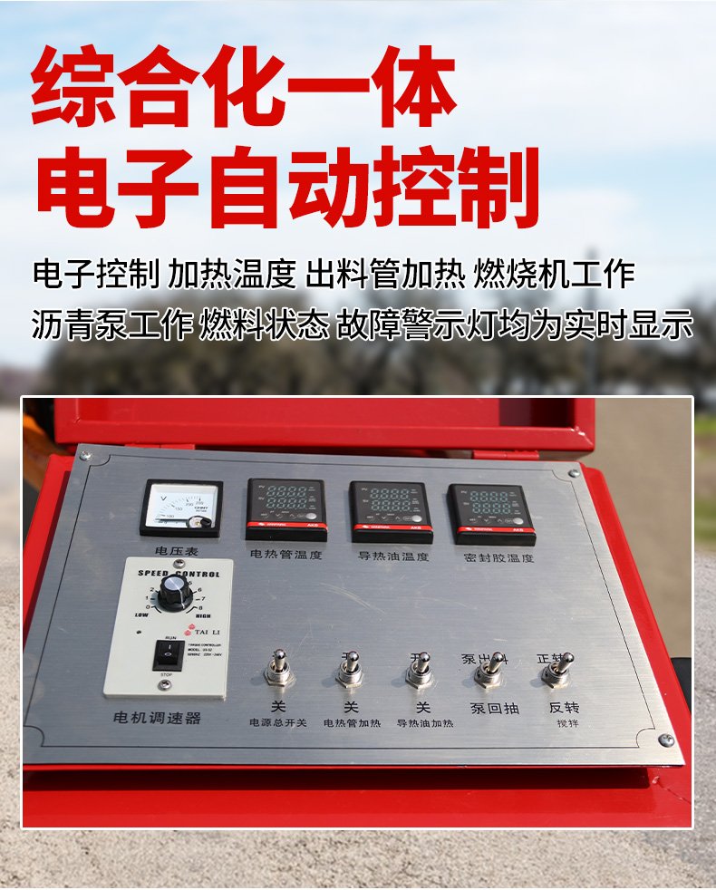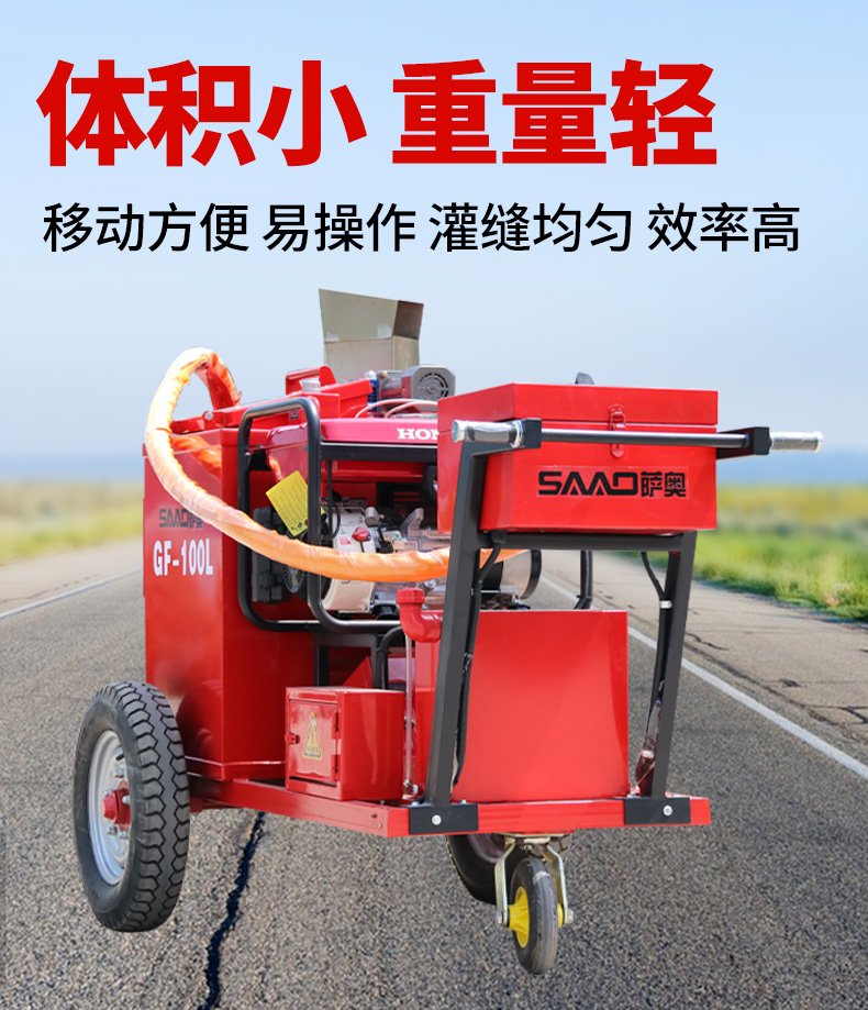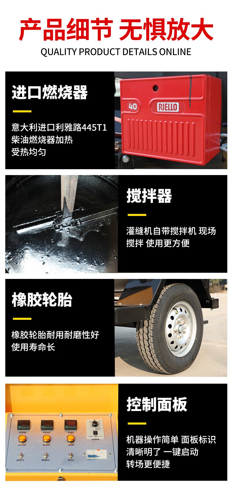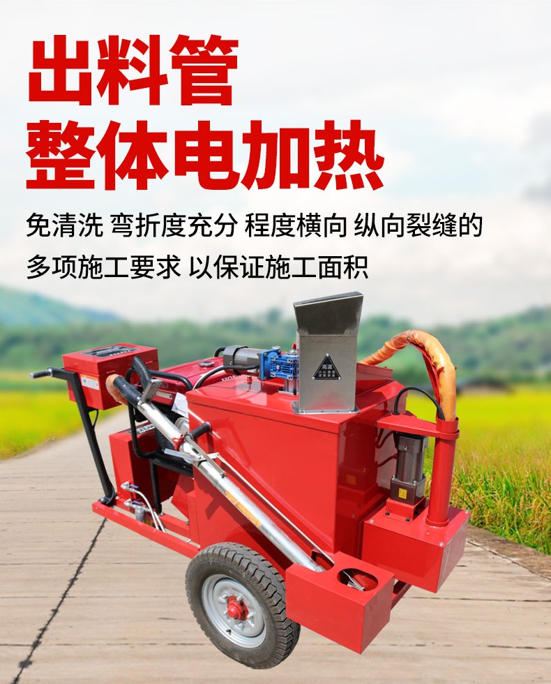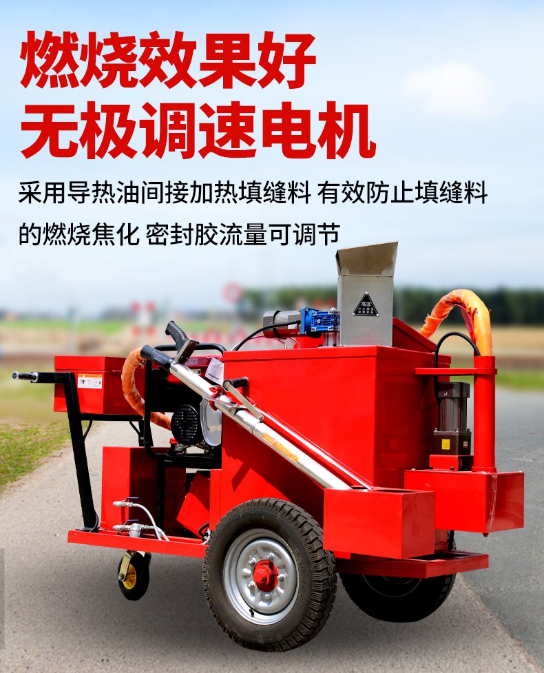 瀝青灌縫機100D熱熔采用導熱油夾套設計,可以加熱熔化普通瀝青,改性瀝青和專用裂縫密封膠,料泵利用壓力將熔化材料噴注到清理過的瀝青混凝土路面裂縫中進行修補。