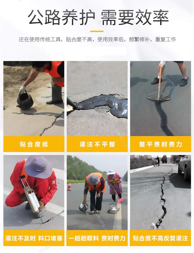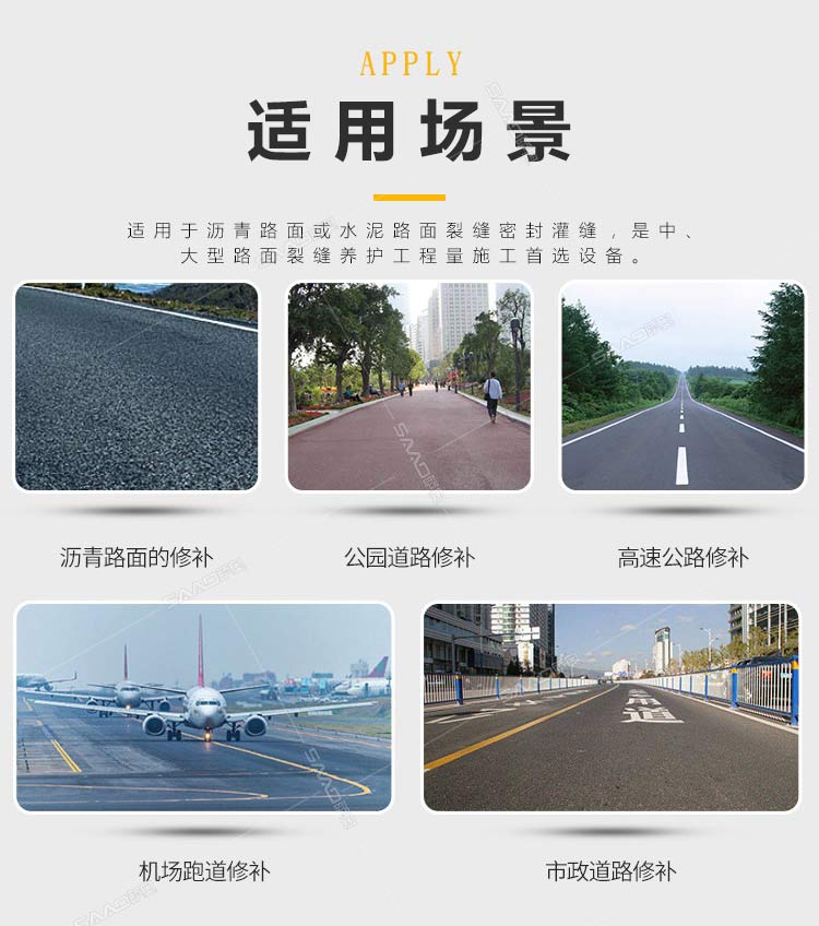 120升自動攪拌款灌縫機(jī)用于瀝青或水泥路面裂縫瀝青灌縫,注意:在灌縫前要對裂縫內(nèi)的塵土進(jìn)行清縫處理。