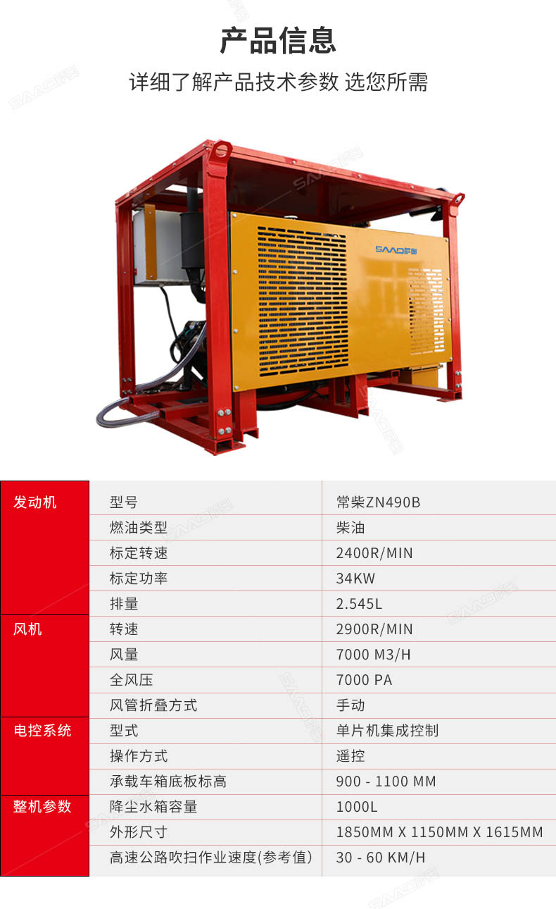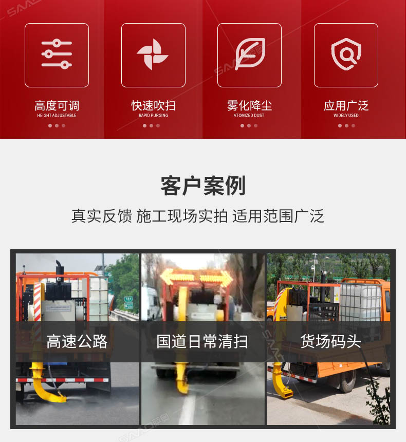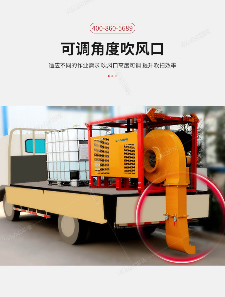 車載路面吹風機針對目前高速公路路邊角清掃困難而生產的一款路面清掃設備,具有快速、高效、低能耗、低工作強度等優點