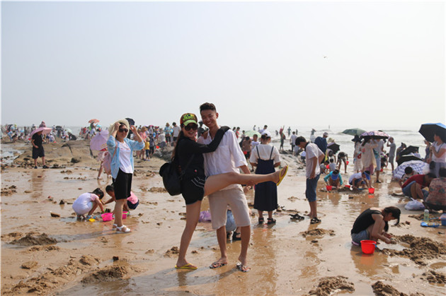 大家玩的正是盡興的時候,有點漲潮,在保安的指導(dǎo)下,靠近了岸邊!