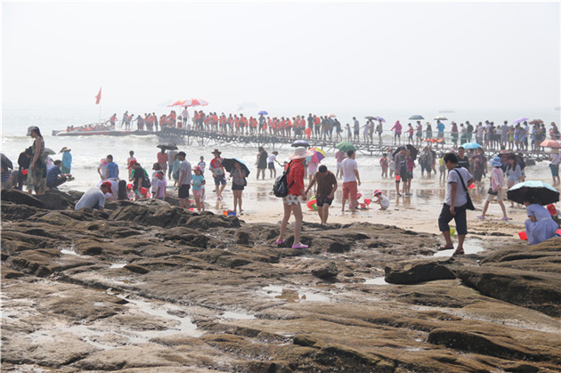 一大早,趕往趕海生態(tài)園,當(dāng)時大家走的地下通道,那才叫一個人山人海~水泄不通~導(dǎo)游拿的旗子桿上面,據(jù)說掛著一塊卡通抹布,大家跟著這個標(biāo)志往前走~