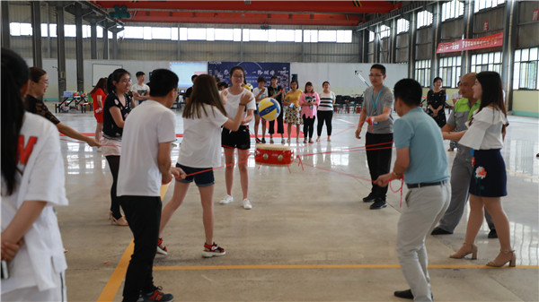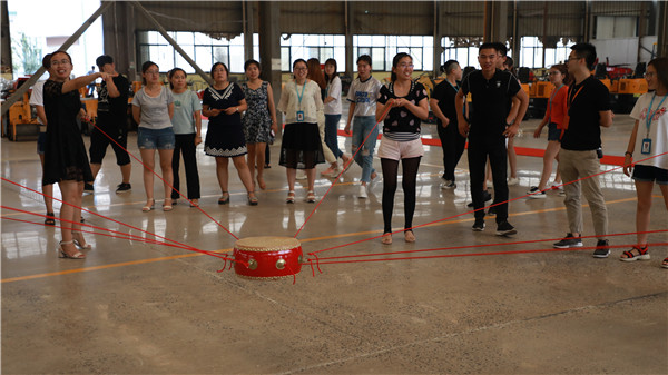 公司開展拓展活動---同心鼓。抽簽選出18個人,分成兩組比賽,9個人一組,每組一個組長,負責制定擊球策略。一個負責發球,其余8個人一同抓著鼓上的繩子,牽著鼓去擊球。定時4分鐘,計算擊球的個數,擊球個數多者勝出。