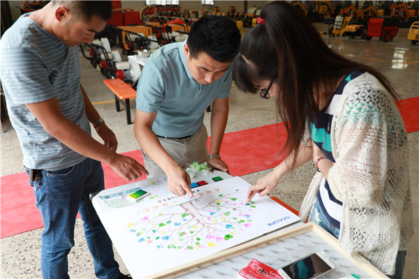 薩奧就像是一顆大樹,因為大家團結一致,共同努力才使得這棵樹長得更加高大、筆挺。慶典開始后,大家排隊在薩奧大樹的樹干上印上一個個手指印,組成了一個個愛心,為本來光禿禿的樹干帶來了絢麗的色彩。