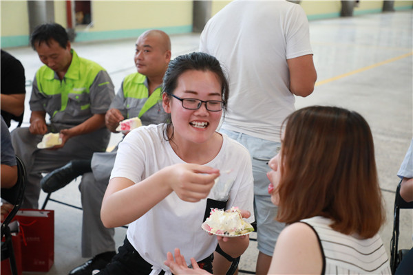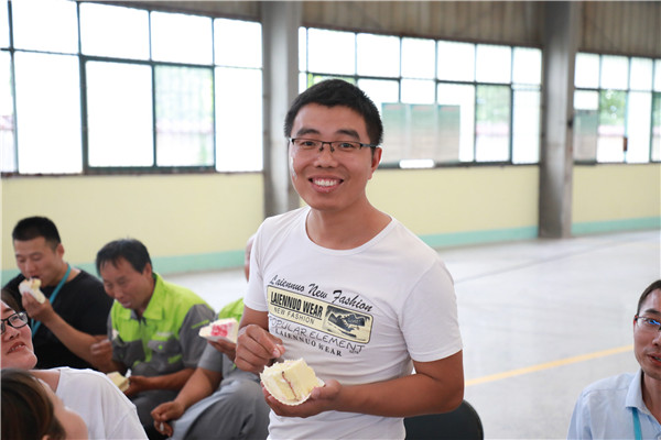 很多時候都不得不感慨一句,薩奧真的是人才濟濟。既然是周年典慶,那么才藝表演自然少不了。在一輪又一輪的才藝表演過后,接下來就展開了砸金蛋的環節。桌上放著10個金蛋,每個金蛋里都放了數額不同的人民幣,選出10個表現好的員工,依次砸金蛋,砸哪個金蛋,哪個金蛋里的錢就屬于自己。是不是很好玩啊?