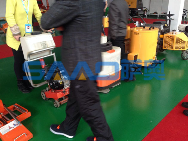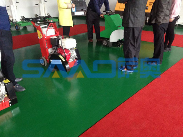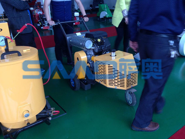 在經理的陪同下,客戶參觀了薩奧公司的生產車間和設備展廳,認真的觀看了路面開槽機,瀝青灌縫機的生產流程。工作人員就產品的配置和技術參數詳細介紹給了客戶,客戶親自試用機器,對產品的功能和質量非常的贊同。