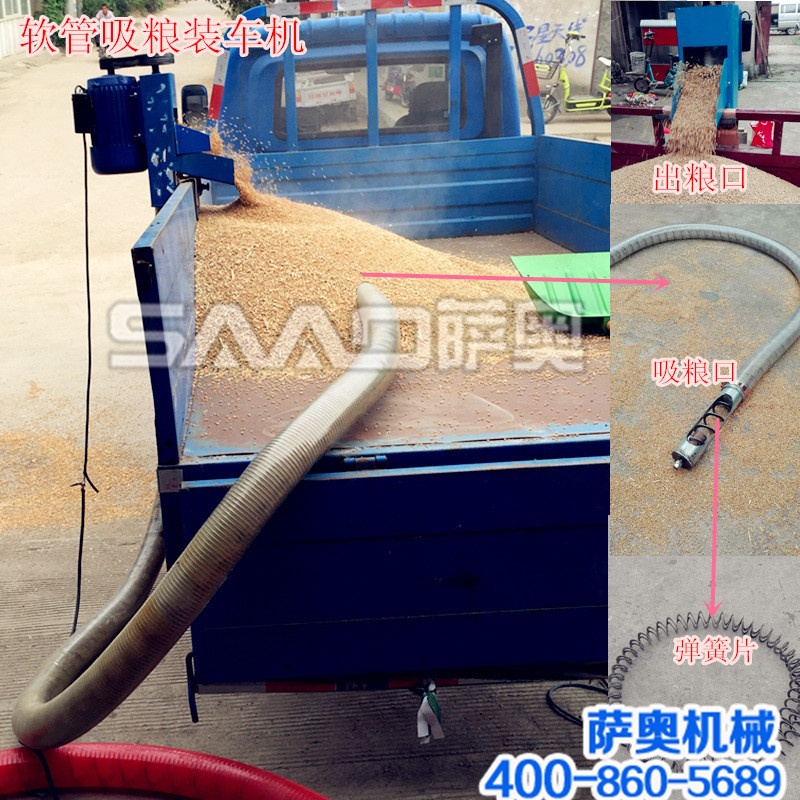 答:是螺旋式的,軟管里面有軟螺旋,高速旋轉(zhuǎn)把糧食提上來。管是軟的不會(huì)對(duì)糧食造成損傷。