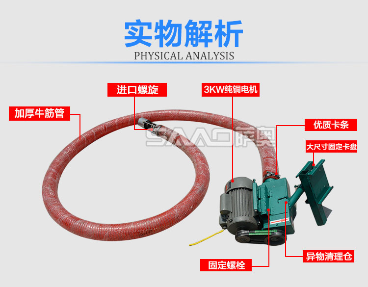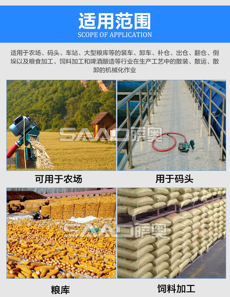 可輸送小麥、大豆、玉米、稻谷、高梁、塑料、樹脂、大米等顆粒。可水平、傾斜方式輸送。比任何運(yùn)送方式、運(yùn)送成本都低。它改變傳統(tǒng)運(yùn)送方式,解放勞動(dòng)力,方便適用,必將掀起新的輸送革命!