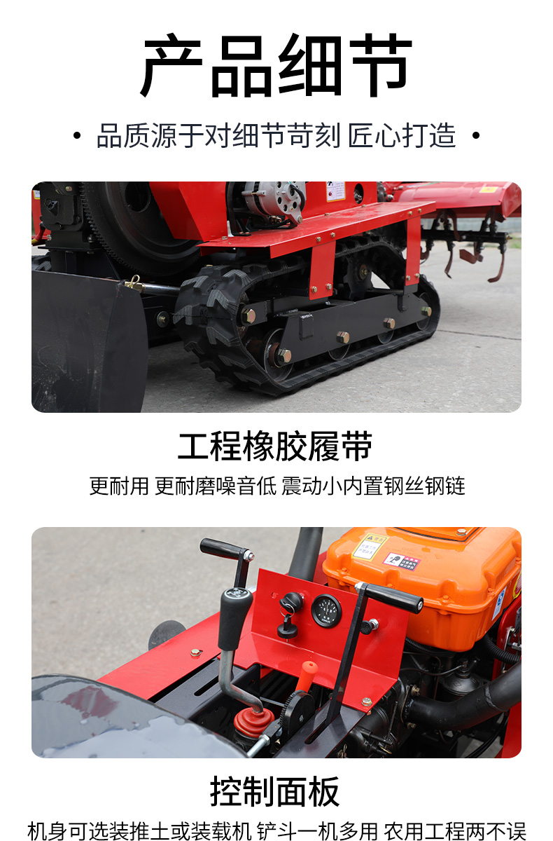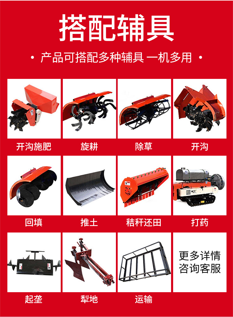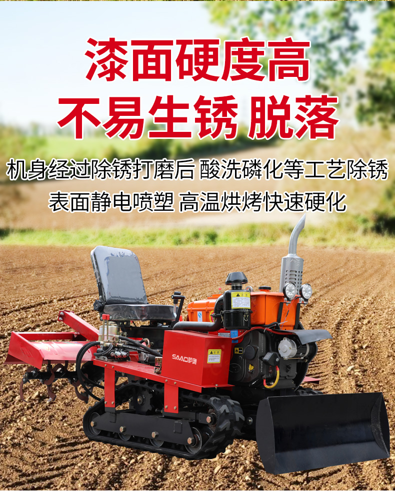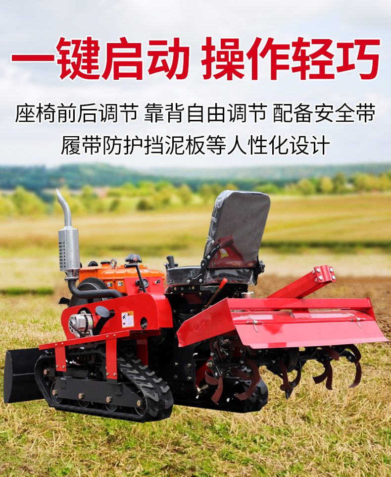 25馬力旱地履帶旋耕機適用于大面積、小面積清除雜草,適用于果園、農田、玉米地、山地的除草作業,打藥/旋耕/犁地/開溝施肥/回填/除草/起壟都可以。
