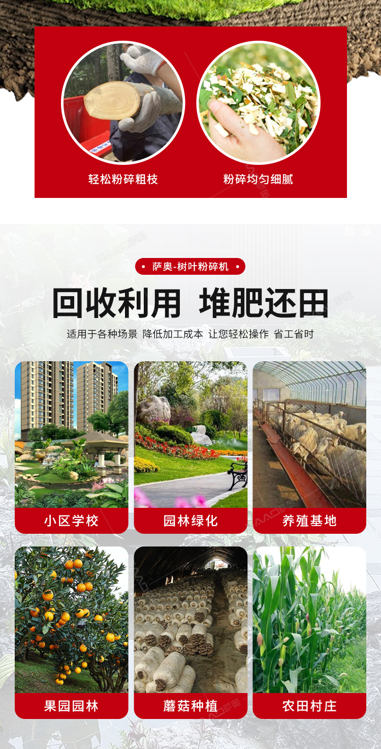 該產品安全可靠、粉碎效率高、效果好。切片、碎霄用途。覆蓋裸露土壤,防止揚塵,凈化空氣。良好的有機肥,可以改良土壤和盆栽土壤。有機肥添加物、花卉盆栽土填料、食用菌栽培基料。