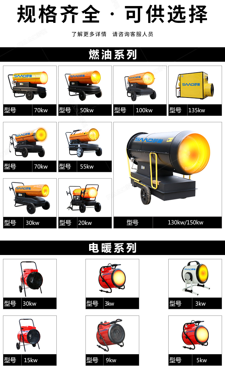 我廠專業生產溫室大棚暖風機,養殖場專用暖風機,15KW/30KW電暖風機,20KW/30KW/70KW/80KW燃油暖風機,型號齊全,全國發貨!過熱保護,恒溫,質量保證!如需了解請致電24小時免費電話:400-860-5689