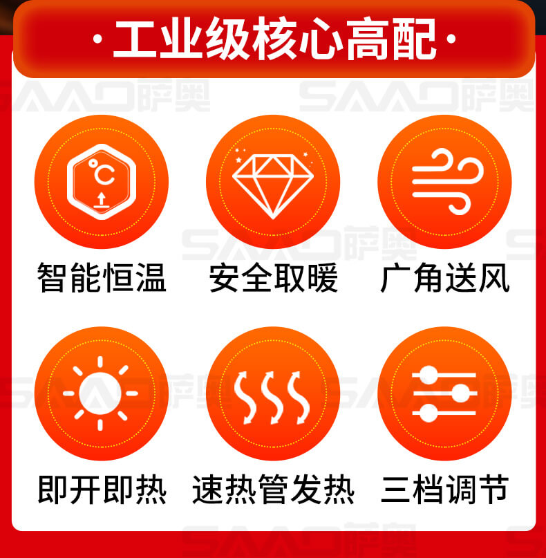 一款大功率、大面積使用的取暖設備,適合廠房、車庫、商店。辦公室、烘干室、養殖場等場所使用。