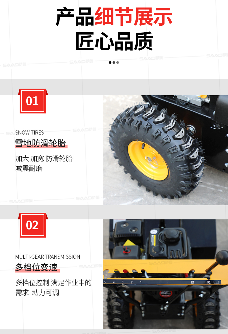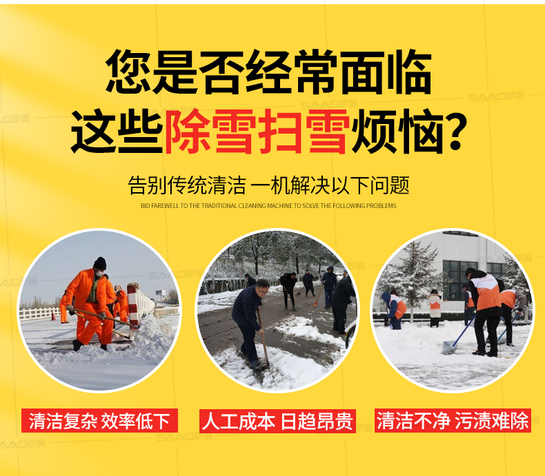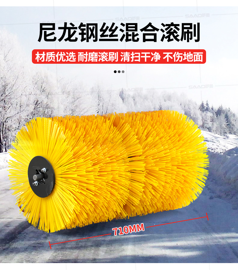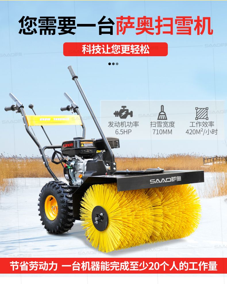 小型掃雪車由中型卡車或重型卡車、四缸汽車發動機、吸 雪管、鼓風機、排雪管、吸雪口、吸雪口液壓升降裝置、 旋轉式清掃刷、清掃刷連桿、固定架、 清掃刷液壓