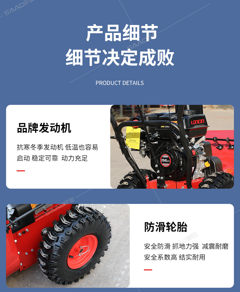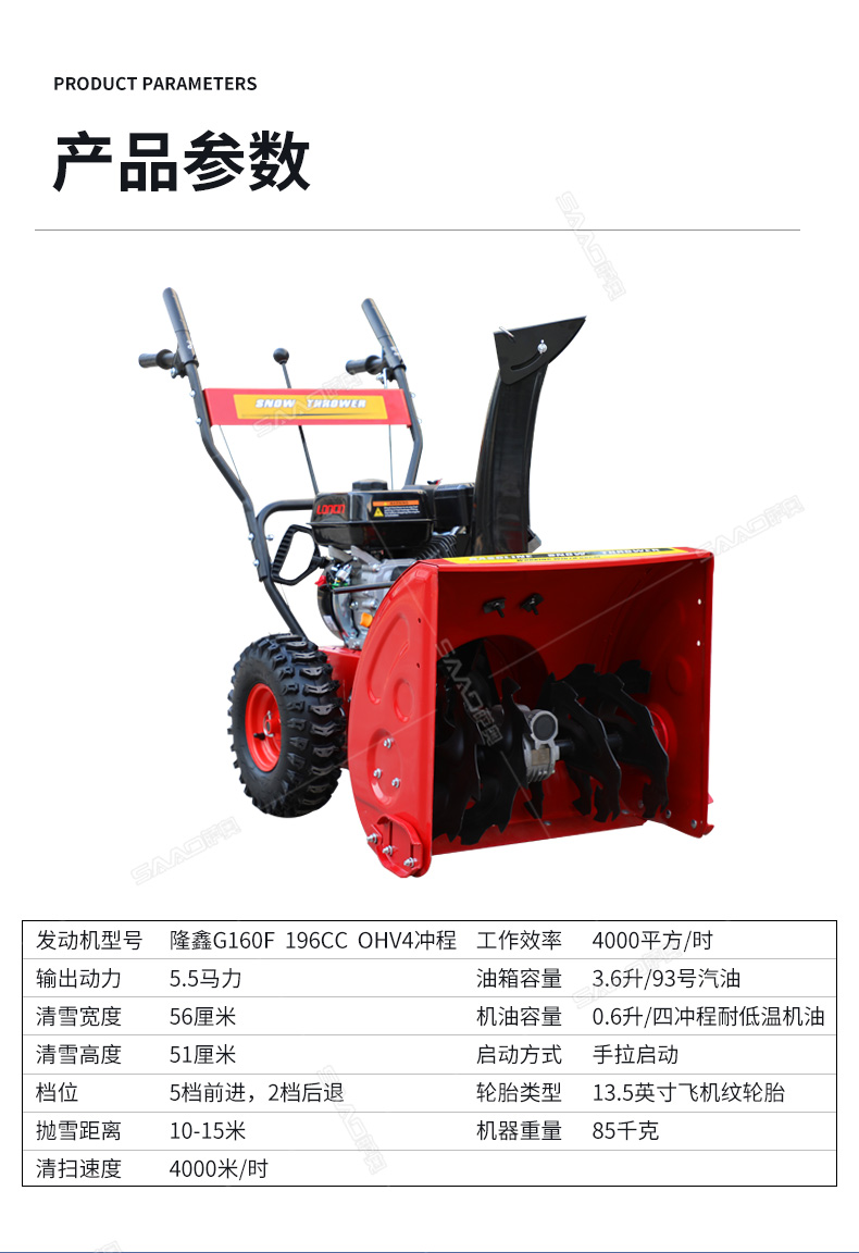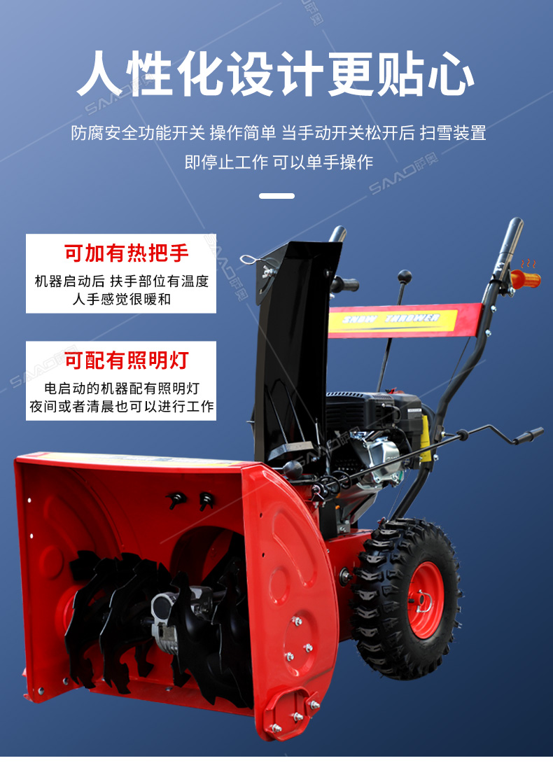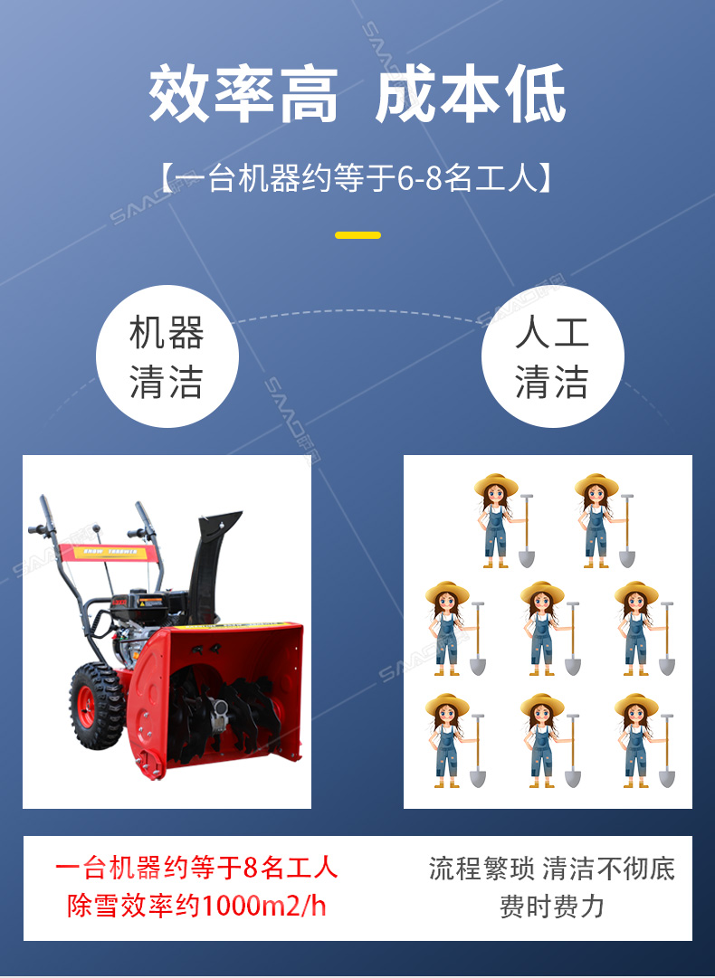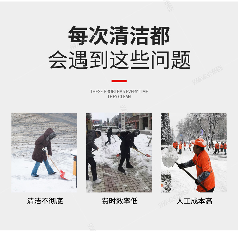 小型掃雪車由中型卡車或重型卡車、四缸汽車發動機、吸 雪管、鼓風機、排雪管、吸雪口、吸雪口液壓升降裝置、 旋轉式清掃刷、清掃刷連桿、固定架、 清掃刷液壓
