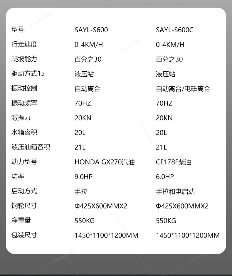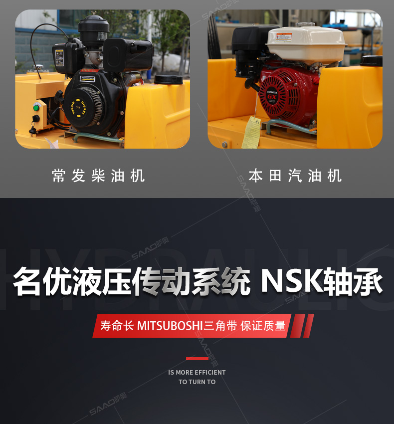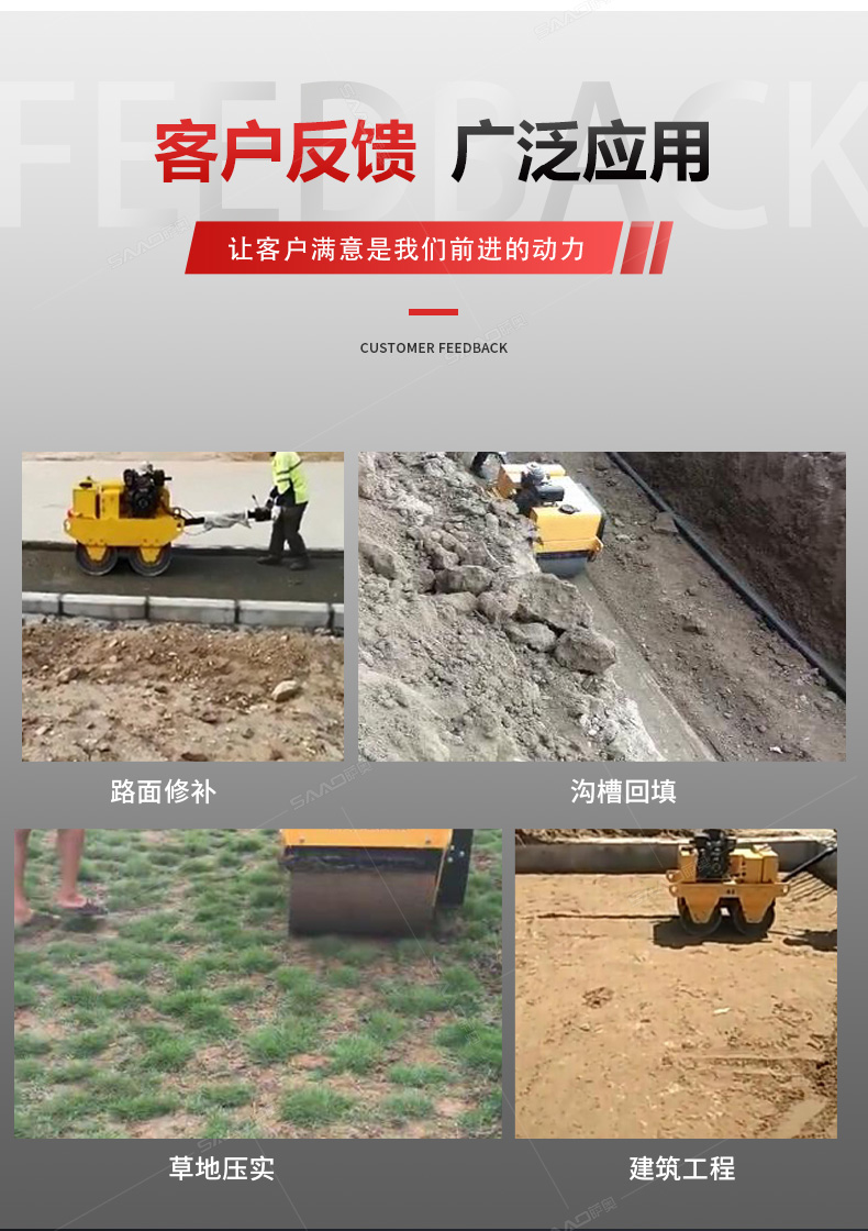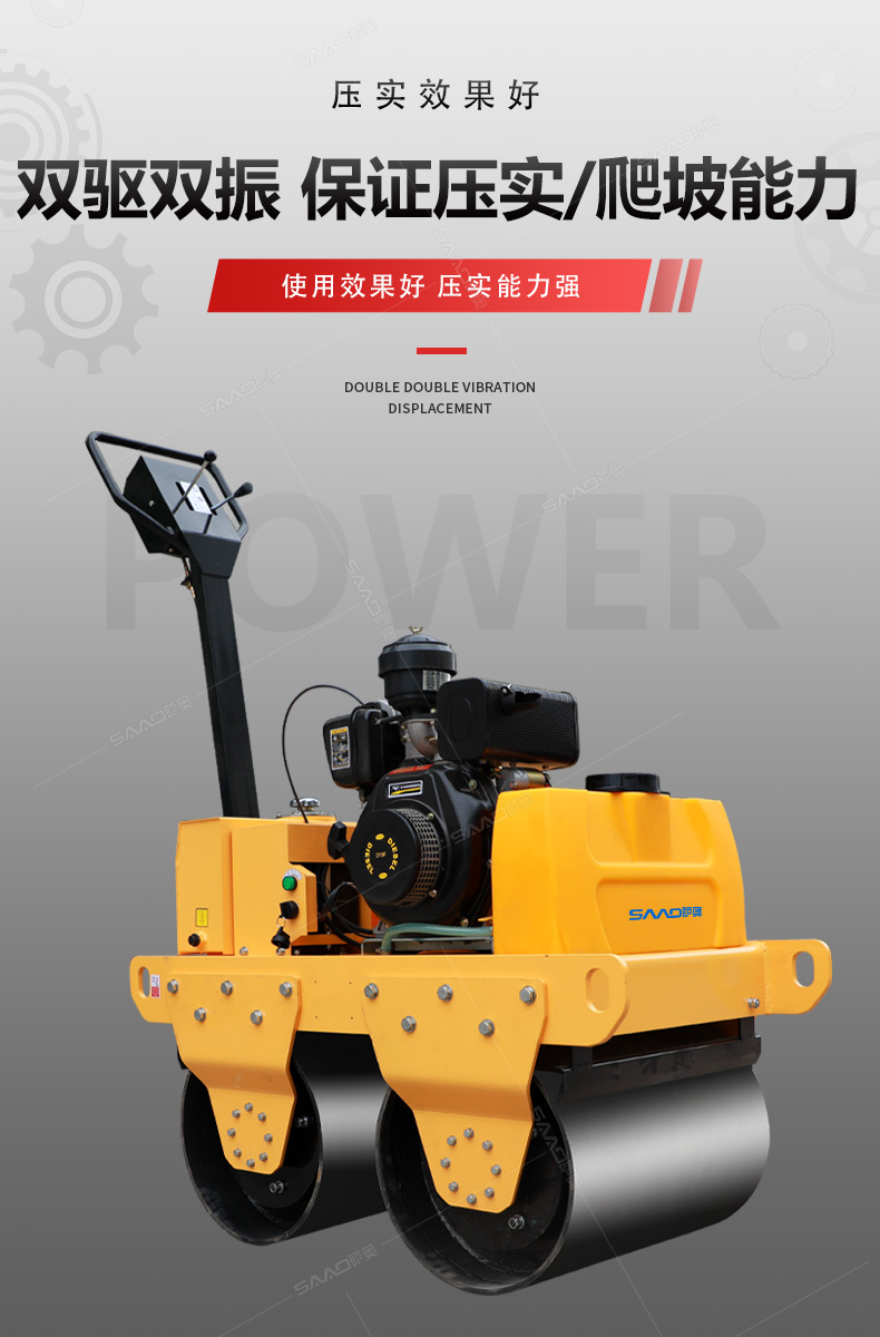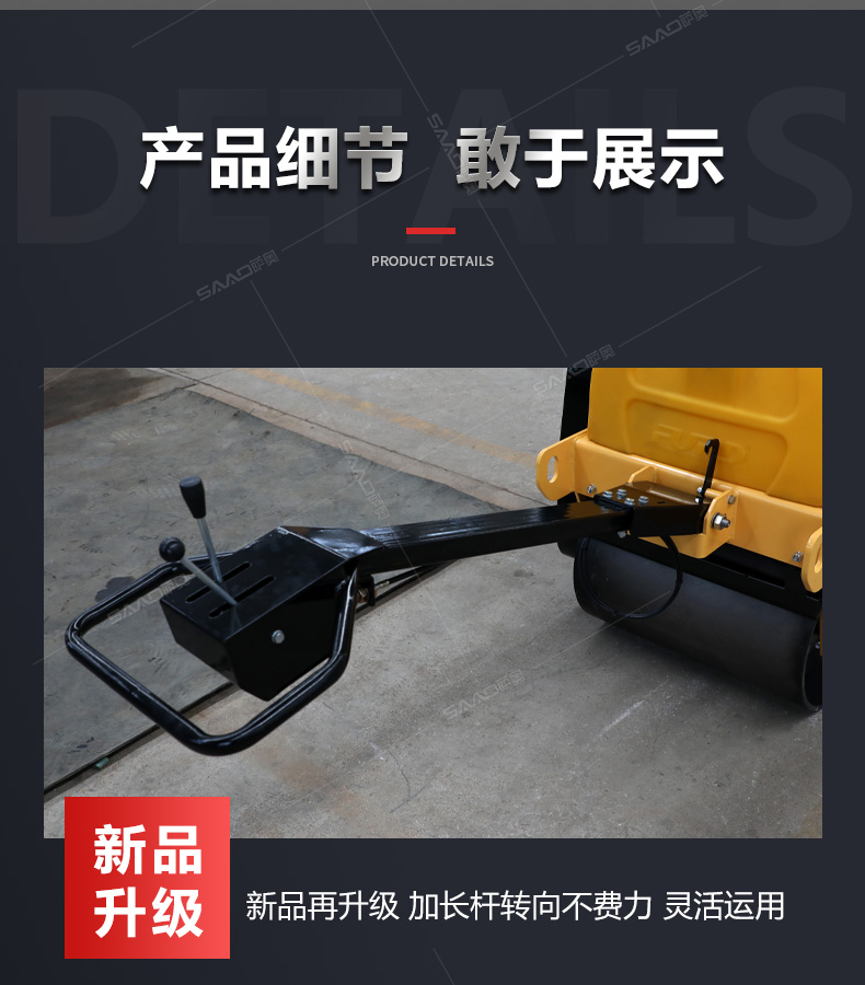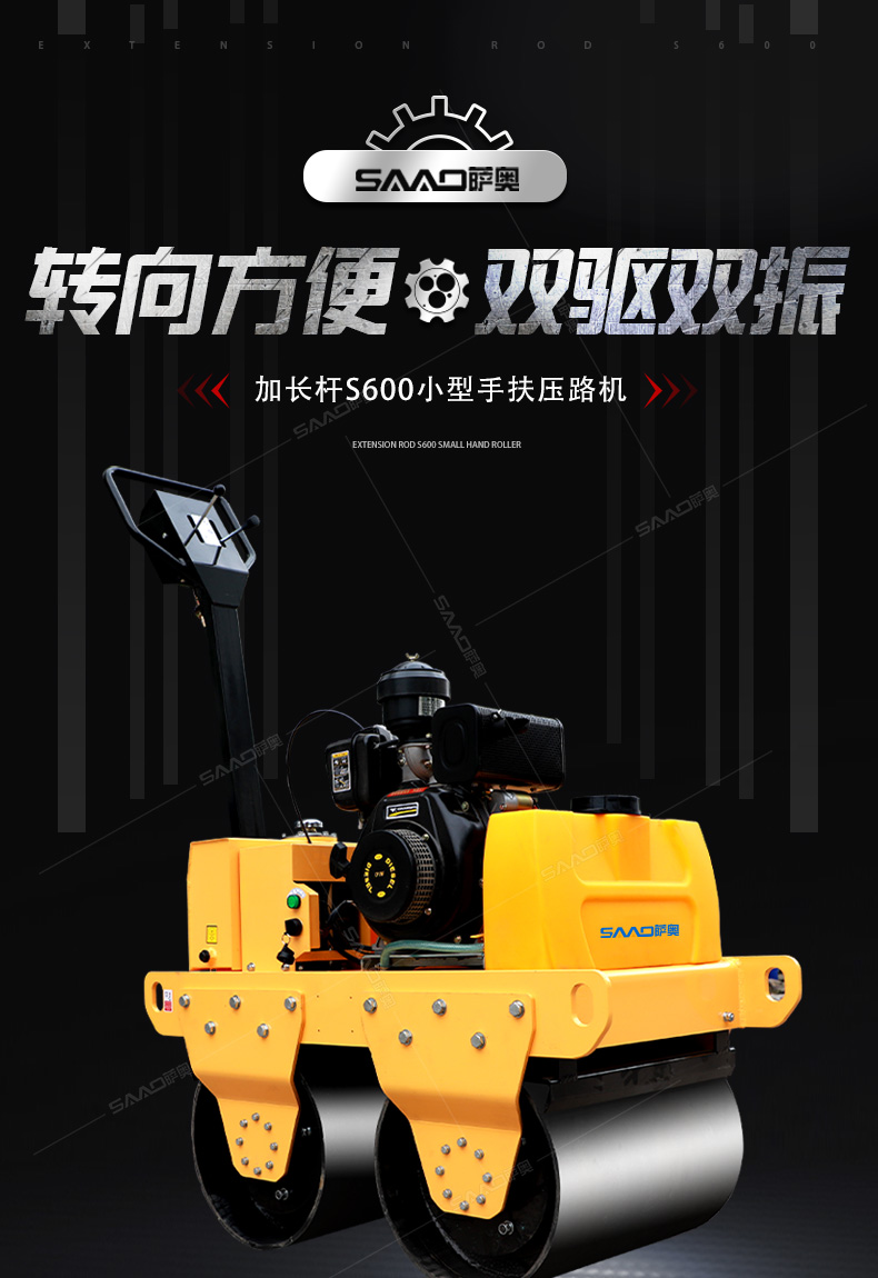 加長(zhǎng)桿s600雙輪手扶壓路機(jī)在原有產(chǎn)品基礎(chǔ)上增加了塑料水箱和加長(zhǎng)桿,主要用于溝渠基礎(chǔ),道路,體育場(chǎng)地的壓實(shí)整平,也可用于壓實(shí)瀝青表面的作業(yè)。