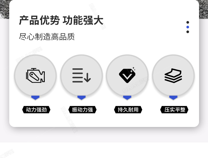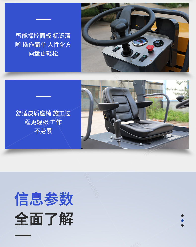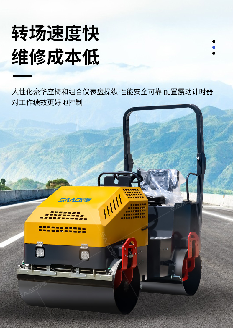 【產品介紹】 小型壓路機主要用于溝渠基礎、道路、體育場地的壓實整平,瀝青表面的作業,礫石、沙土等工程基礎壓實修復,學校操場跑道和碾壓草坪等。 【產品優勢】 1、一臺高性