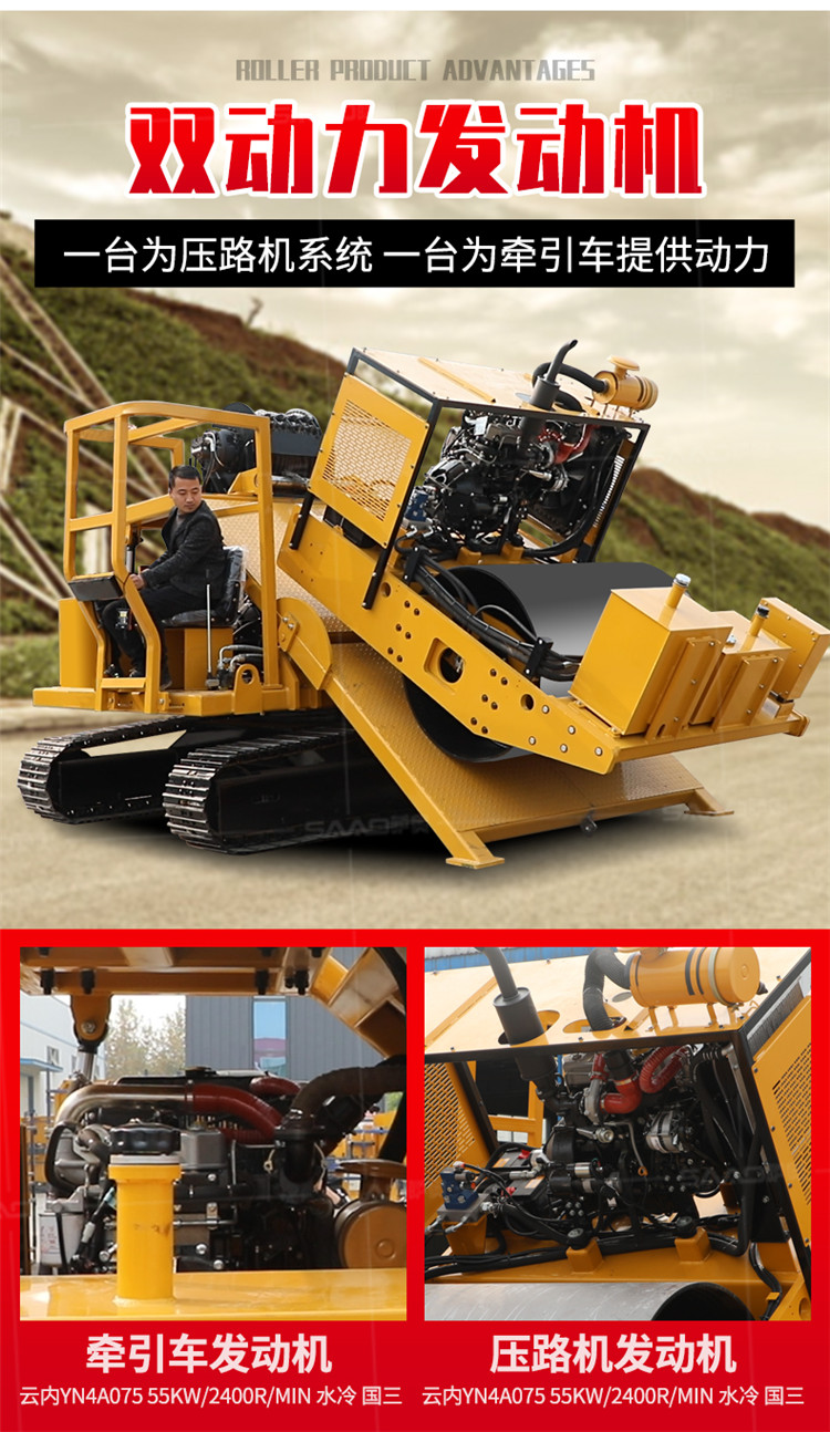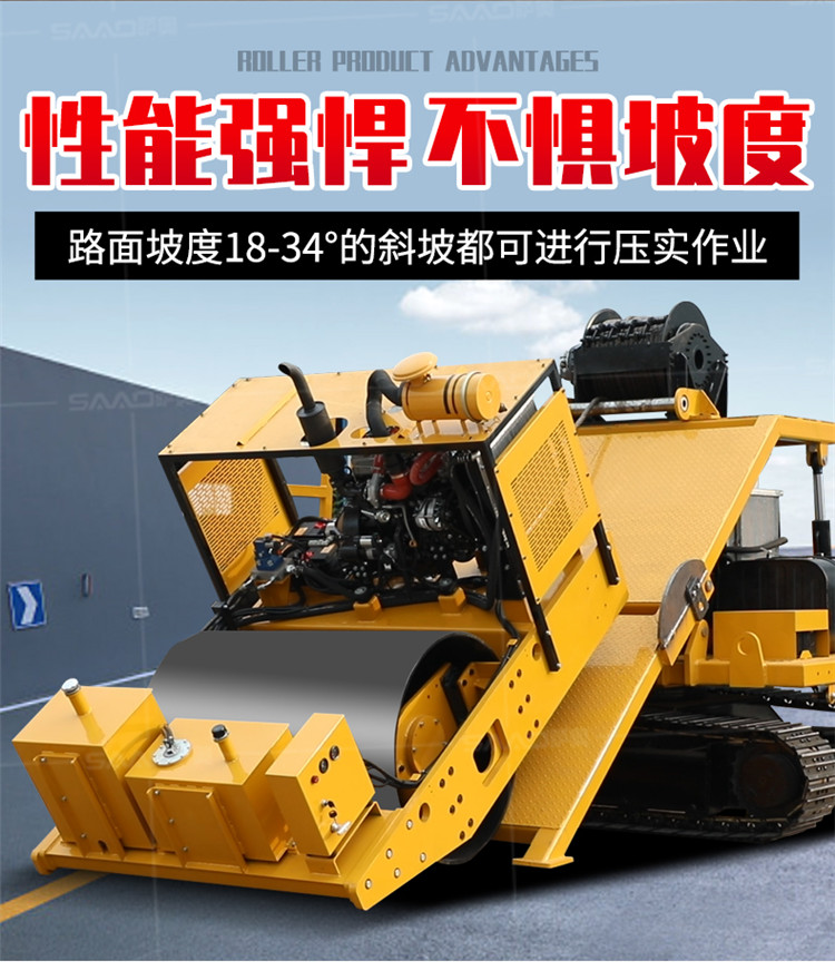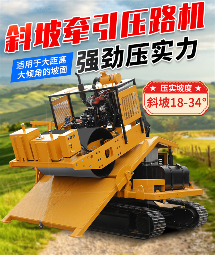 帶絞車斜坡壓路機是由壓路機和牽引絞車共同組成的協同工作的壓路機,使用于大距離,大傾角的坡面工作。 在泥土壩,河道邊坡等具有傾斜角度的斜坡地面上,常規的大型壓實機械無