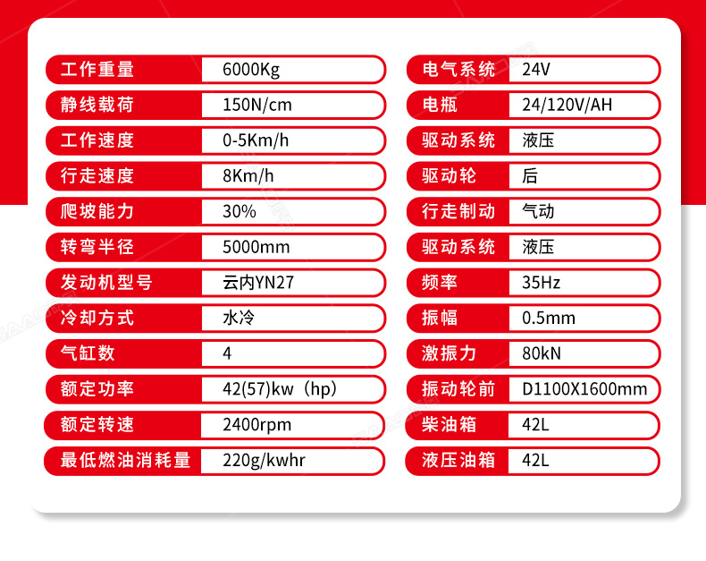 6噸壓路機(jī)主要應(yīng)用市政道路、公路維護(hù),具有強(qiáng)大的激震力及很高的靜線壓力,適宜于碾壓非粘性材料如礫石、礫土、碎石、砂石混合料和巖石填方以及粘土等。